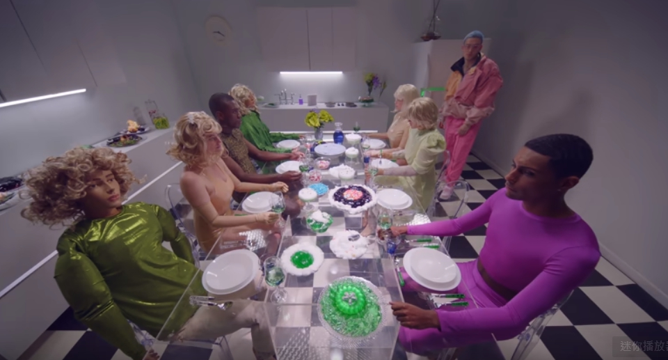 來到了一場聚餐,桌上五顏六色,很浮誇的餐點